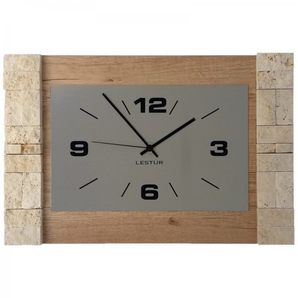 Kakovostna lesena ura Lestur. Odlikuje jo lep modern dizajn, obroba iz oblikovanega kamenja in kvaliteten mehanizem.