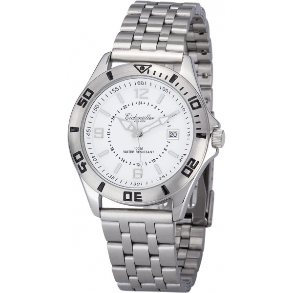Ta klasično zasnovana ura z pridihom športno oblikovane moške ure z arabskimi številkami ter jasnimi indeksi ur in minut zagotavlja optimalno vidljivost. Tako ohišje ure kot pas sta v celoti izdelana iz nerjavečega jekla. Čudovita ura z datumom na 3 uri in posebej kaljeno mineralno steklo, ki ščiti številčnico pred zunanjimi vplivi. Ta model je vodoodporen do 10 ATM.