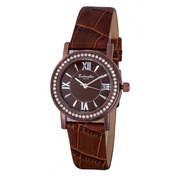 Ženska ročna ura Eichmuller. Elegantna modna ročna ura namenjena vsem ki obožujete klasično eleganco. S kamenčki obdan rob ohišja in lepo narejena številčnica uro naredi primerno za vsak trenutek in kombinacijo z ostalim nakitom.