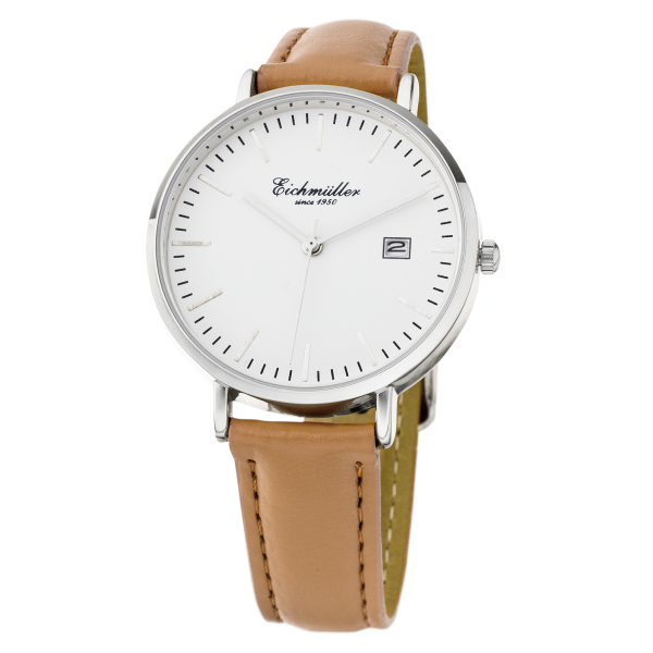 Elegantna ženska ura nemškega proizvajalce Eichmuller. Odlikuje jo pregledna številčnica , z datumom in elegantnim usnjenim pasom. Prava izbira za vse priložnosti.