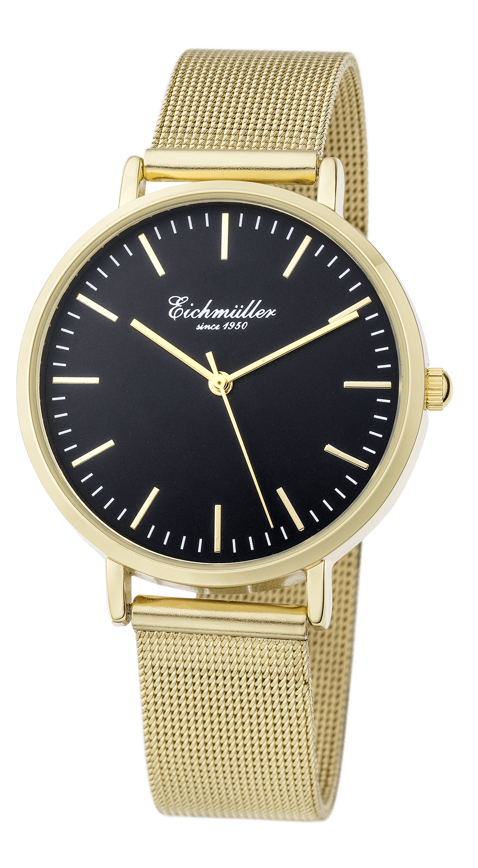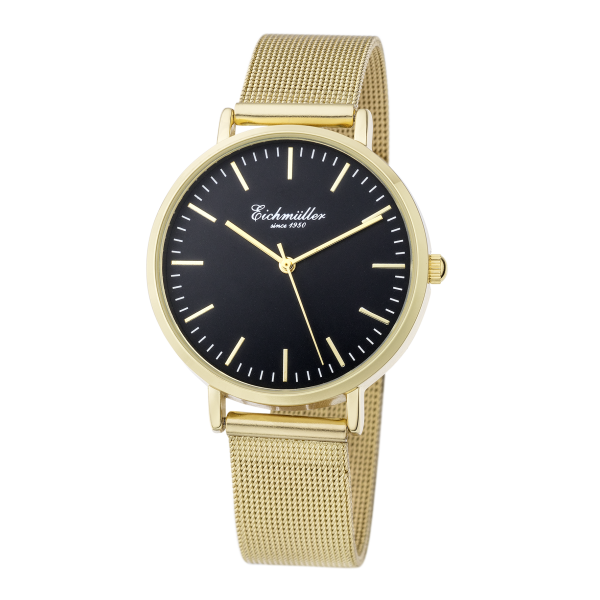 Klasična ženska ura znamke Eichmuller. Prednost te ure je izredna grafična preglednost z izrazitimi oznakami ur in minut. Uro poživi rdeč sekundni kazalec ter kvaliteten, zapestju prijeten usnjen pas.