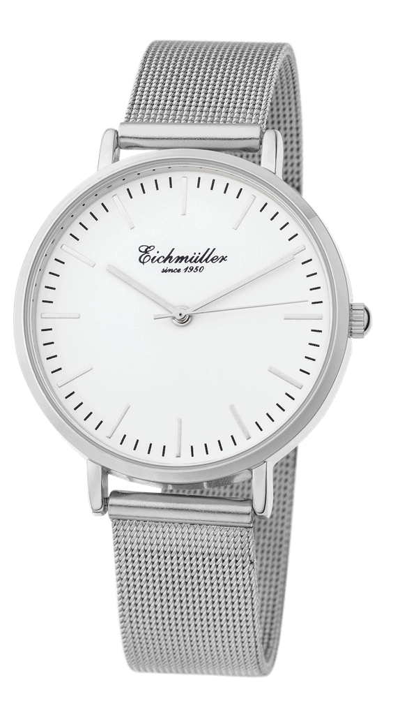 Klasična ženska ura znamke Eichmuller. Prednost te ure je izredna grafična preglednost z izrazitimi oznakami ur in minut. Uro poživi rdeč sekundni kazalec ter kvaliteten, zapestju prijeten usnjen pas.
