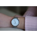 Elegantna, klasična in sodobna, ženska ura v preprostem dizajnu. Številčnica z arabskimi številkami omogoči dobro preglednost in hkrati nudi klasičen izgled. Majhen prikaz datuma je integriran na položaj pri številki tri. Tako ohišje ure kot tudi pas je izdelan iz kakovostnega nerjavečega jekla.