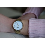 Za to žensko ročno uro je značilen klasičen in preprost dizajn. Številčnica je bogata s kontrastom in zagotavlja dobro berljivost in je zaščitena pred zunanjimi vplivi s posebno kaljenim mineralnim steklom. Ohišje je izdelano iz visoko kakovostnega nerjavečega jekla. Mehki usnjen pas zagotavlja maksimalno udobje na zapestju. Navedeni preskusni tlak (vodoodpornost) je 5 ATM in je primeren za vsakodnevno uporabo.