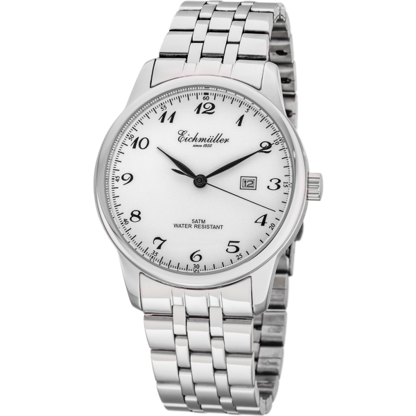 Elegantna, klasična in sodobna. Ta moška ura se je zasnovana preprosto. Številčnica s svojimi arabskimi številkami ponuja optimalno berljivost in hkrati zaokroži klasični izgled. Majhen prikaz datuma je prikazan pri številki tri. Tako ohišje ure kot pas sta izdelana iz kakovostnega nerjavečega jekla.