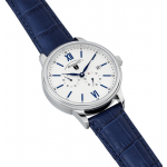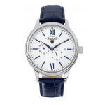 Značilna klasična in preprosta oblika za moško roko. Številčnica je bogata s kontrastom in zagotavlja dobro berljivost ter je zaščitena pred zunanjimi vplivi s posebno kaljenim mineralnim steklom. Ohišje je izdelano iz visoko kakovostnega nerjavečega jekla. Mehki usnjeni pas zagotavlja maksimalno udobje na zapestju. Navedeni preskusni tlak (vodoodpornost) je 5 ATM in je primeren za vsakodnevno uporabo.
