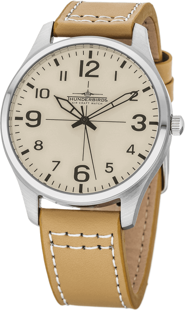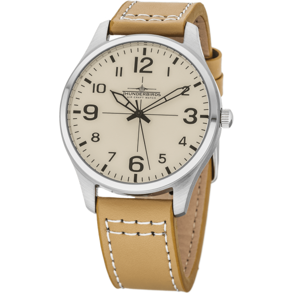 Moderna in hkrati elegantna moška ura Thunderbirds iz nerjavečega jekla. Ura ima kakovosten, malo robusten usnjeni pas s šivom in zaponko iz nerjavečega jekla